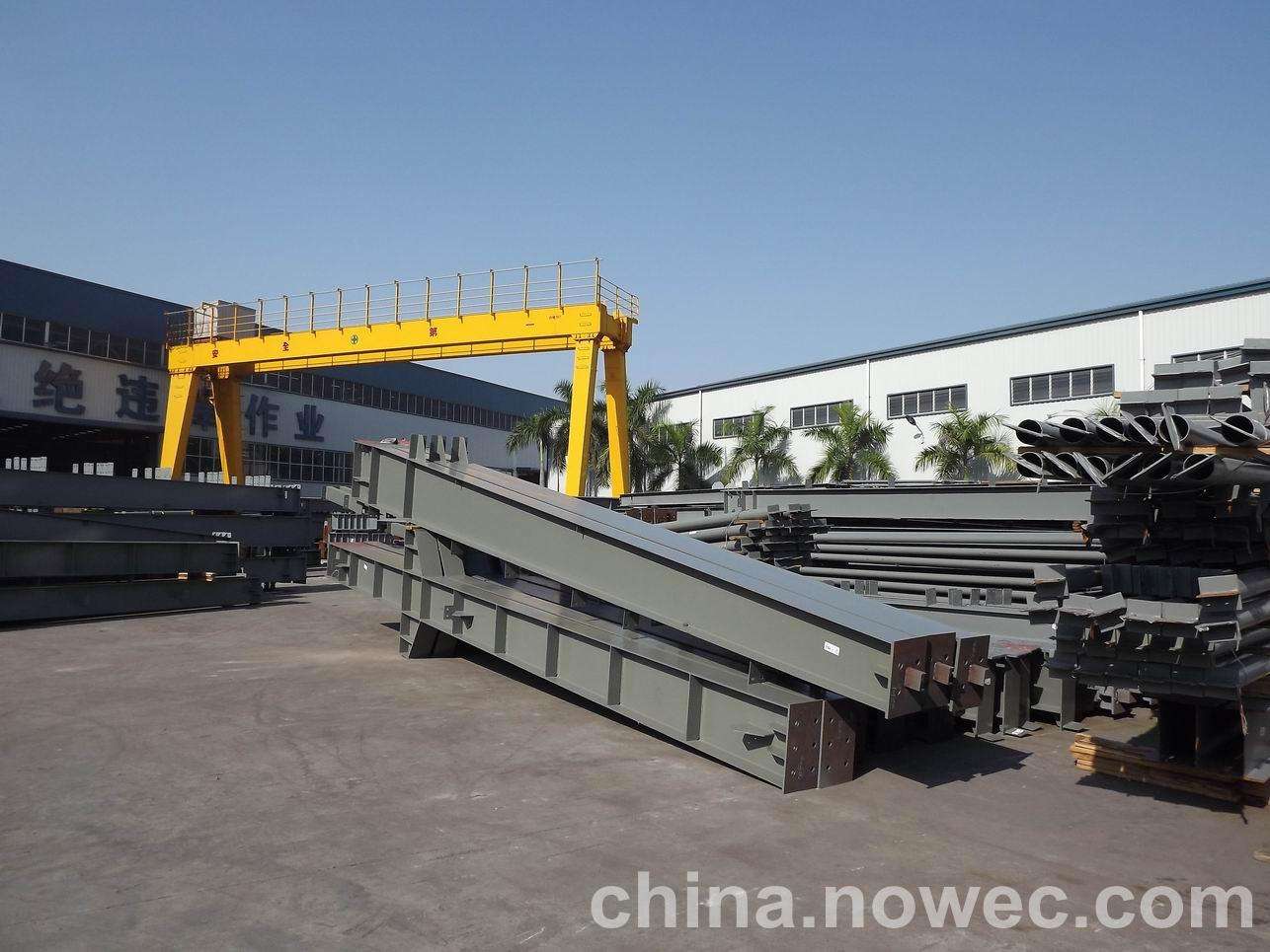 条状单元一般沿长跨方向分割,其宽度约为1~3个网格,其长度为l2或l2/2(l2为短跨跨距)。块状单元一般沿庄河网架平面纵横向分割成矩形或正方形单元。每个单元的重量以现有起重机能胜任为准。条(块)与条(块)之间可以直接拼装,也可空一网格在高空拼装。由于条(块)状单元是在地面拼装,因而高空作业量较高空散装法大为减少,拼装支架也减少很多,又能充分利用现有起重设备,故较经济。这种安装方法适用于分割后网架的钢度和受力状况改变较小的各类中小型网架,如两向正交正放四角锥、正放抽空四角锥等网架。